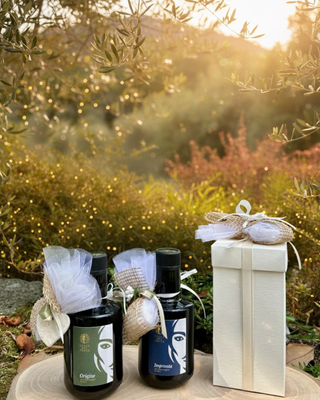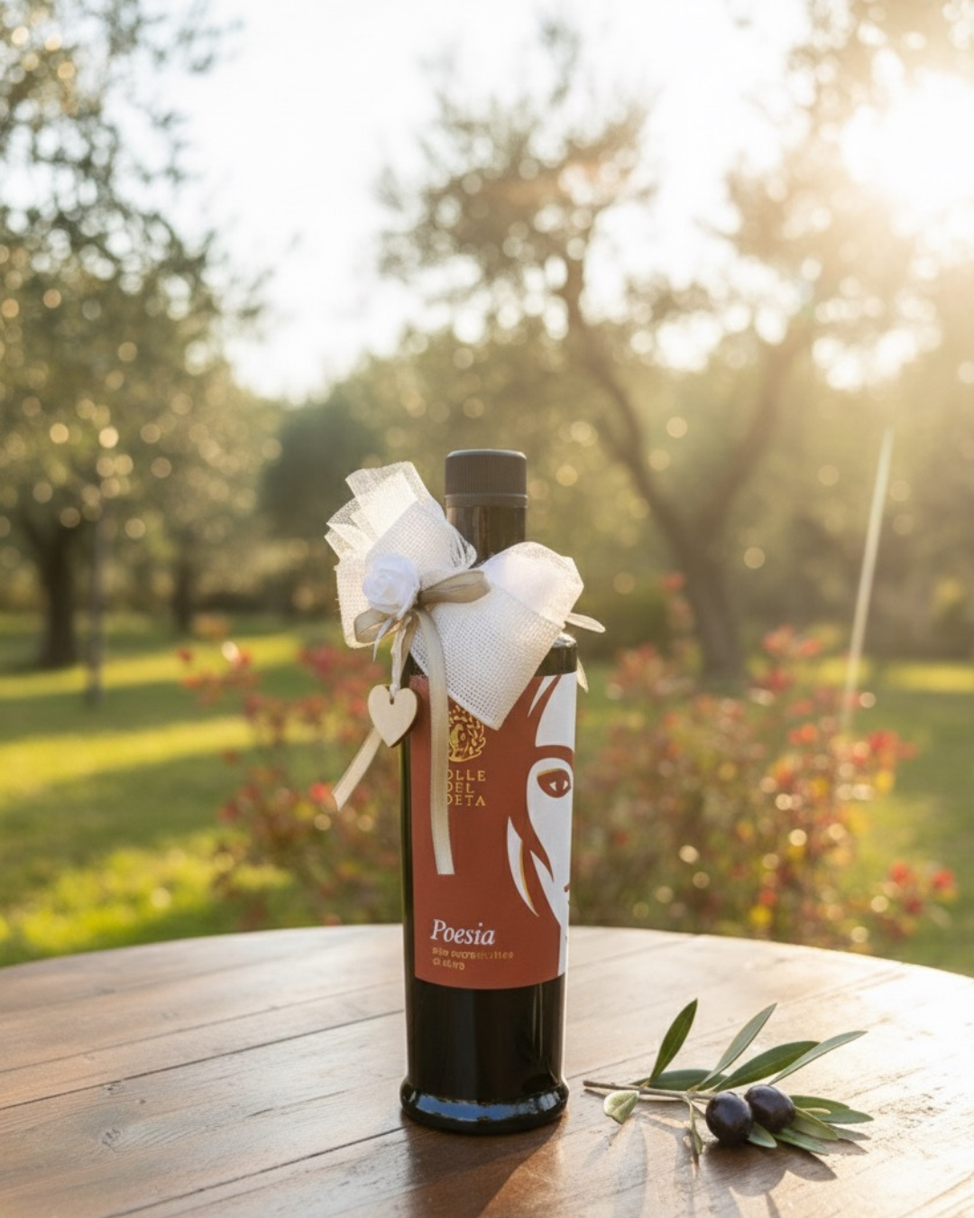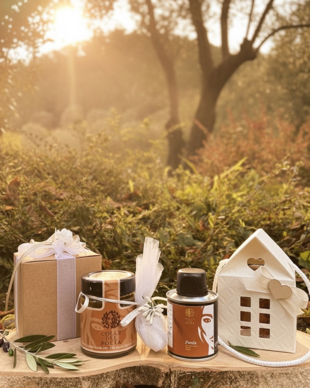 Le bomboniere del nostro Frantoio Colle del Poeta sono pensate per lasciare un ricordo speciale, fatto di sapori autentici, profumi naturali e cura artigianale.