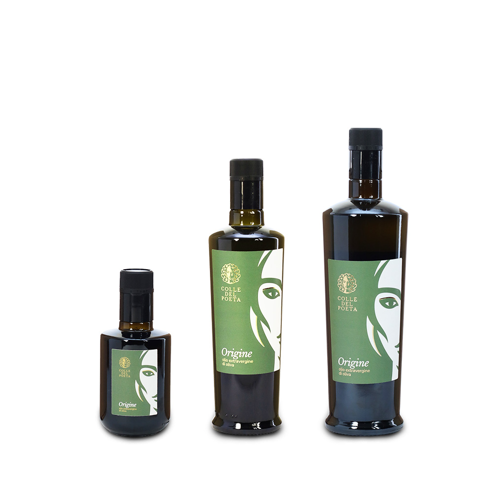 Olio Extravergine di Oliva “Origine” ottenuto da un blend di cultivar locali, in particolare Leccino, Frantoio, Pendolino e Rasara.